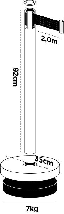(6 Pack) Flexibarrier Gurtpfost -Eco 2m- Silberner Pfosten mit schwarzem Gurt