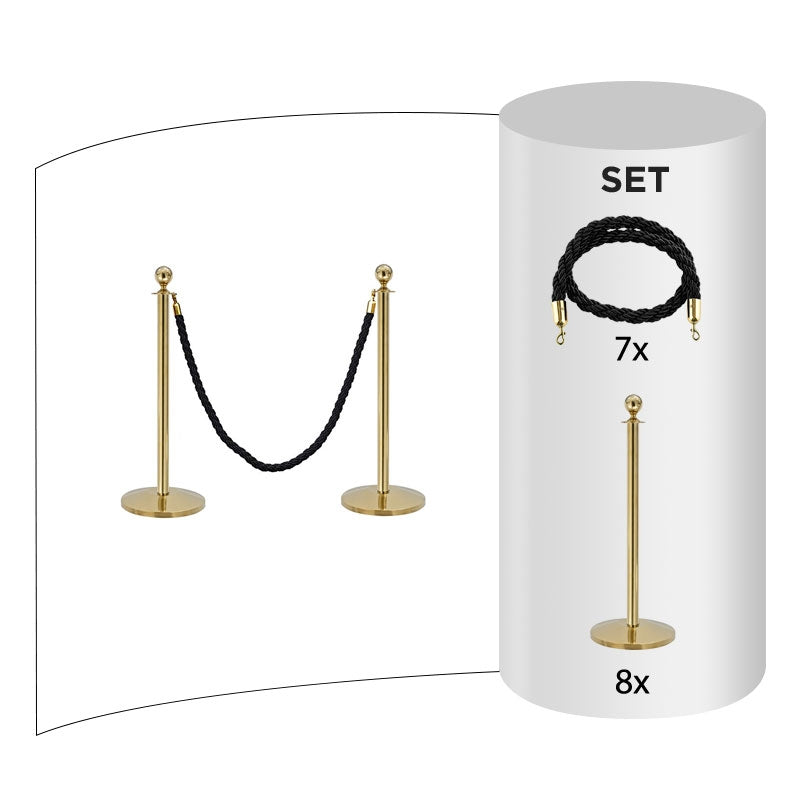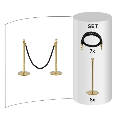 8 pack - Brass Flexibarrier Rope Barrier + Black rope (8x Brass Barriers + 7x Black Ropes)