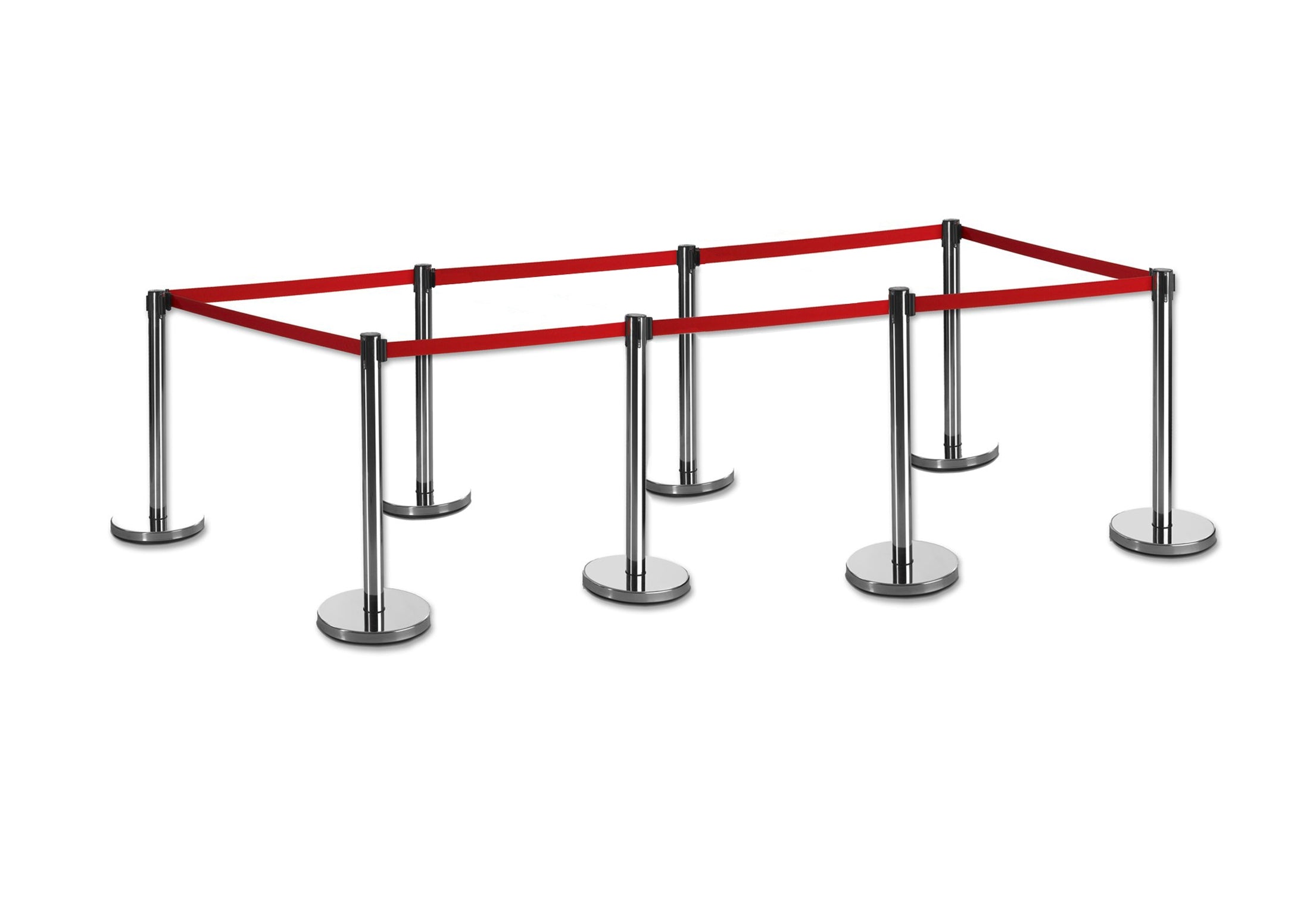 (8 confezioni) Flexibarrier nastro paletto segnapercorso -Eco 2m- Palo argento con nastro rosso