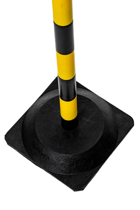 The Flexibarrier Basic Post & Chain Barrier Kit is a versatile and durable piece of equipment that acts as a temporary barrier solution to guide pedestrian traffic as well as restrict private areas from unauthorized persons. It is popularly used as temporary fencing in commercial settings like shopping malls, parking, hospitals, etc. This post and chain safety barrier kit includes (16) 90cm high, 4cm diam. plastic posts with 27x27cm square rubber base and a 25m plastic chain. This indoor/outdoor barrier kit is offered in eye-catching Black/Yellow designs.