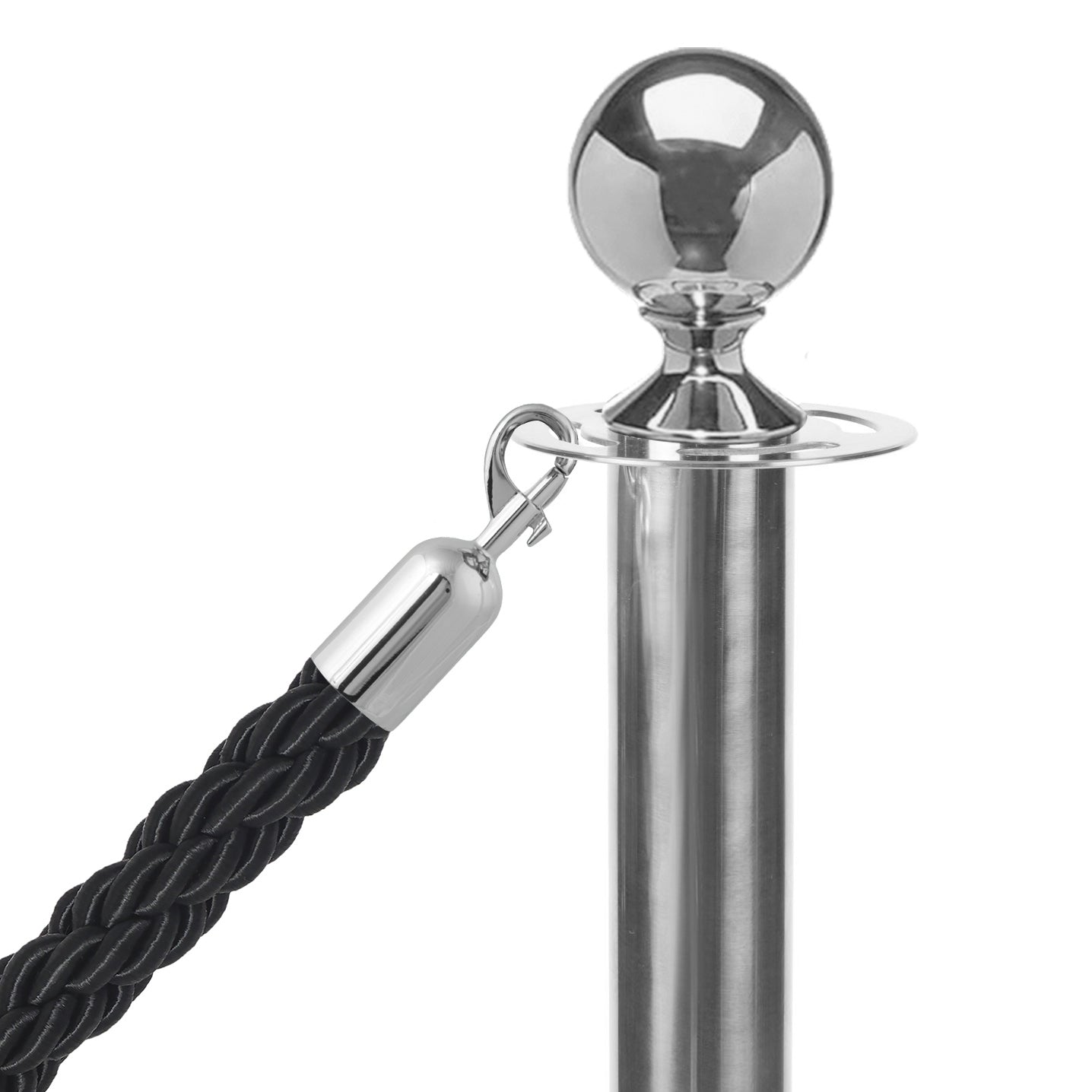 10 pack - Silver Flexibarrier Rope Barrier + Black rope (10x Silver Barriers + 9x Black Ropes)