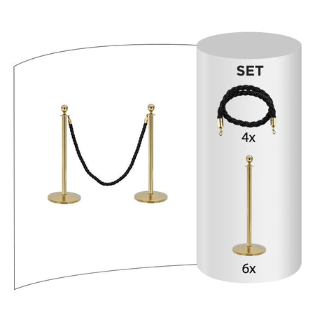 6 pack - Brass Flexibarrier Rope Barrier + Black rope (6x Brass Barriers + 4x Black Ropes)